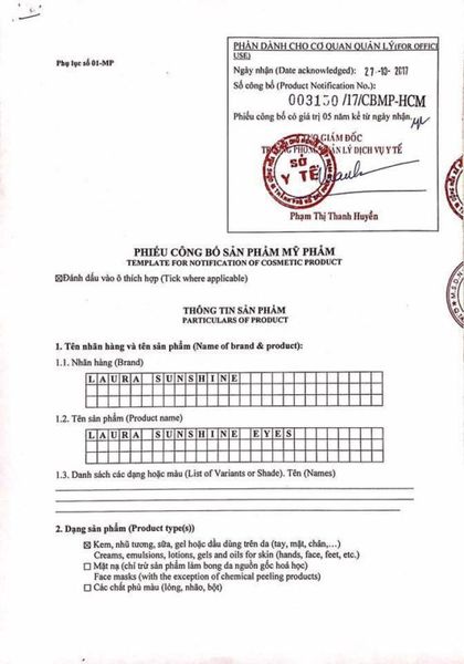 Giấy chứng nhận Nhà phân phối độc quyền mỹ phẩm Laura Sunshine Nhật Kim Anh